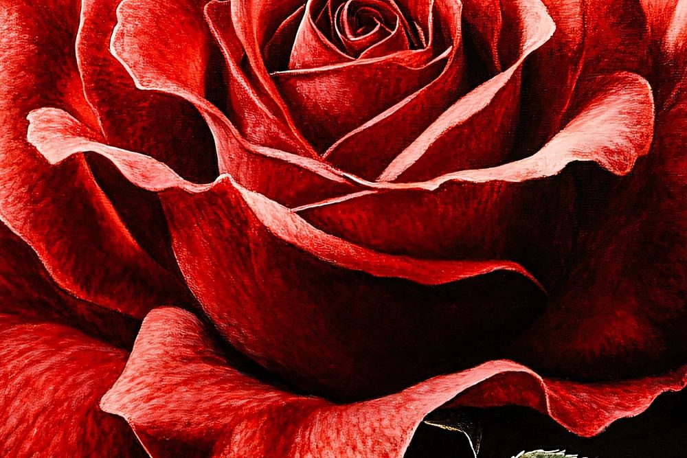 Ce magnifique gros plan montre une rose rouge dans toute sa splendeur. Le rendu détaillé des pétales délicats met en valeur la beauté naturelle de la fleur et son rouge intense. Parfait pour les amateurs d'art classique et romantique, ce motif apporte une touche d'élégance et de sophistication à n'importe quelle pièce. Le contraste sombre de l'arrière-plan accentue les couleurs vives et donne à la rose un aspect presque intemporel. Idéal pour décorer les salons, les bureaux ou les chambres à coucher afin de créer une atmosphère chaleureuse et sophistiquée.