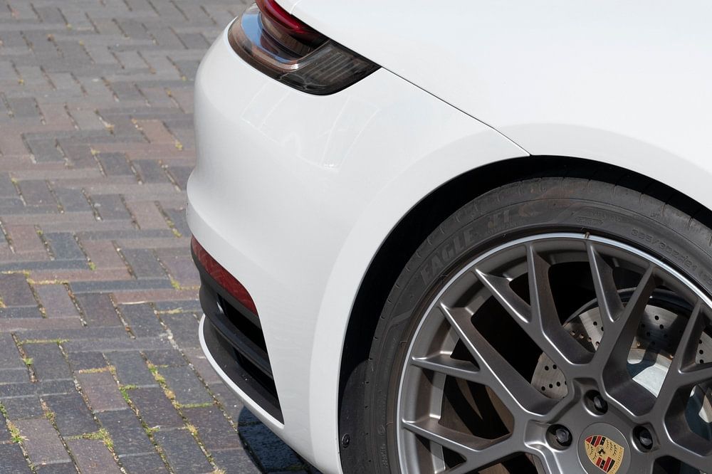 Détail de l'arrière d'une Porsche 911 (Porsche 992) sur cette voiture de sport blanche moderne garée dans la rue à Zierikzee, Zeeland, Pays-Bas. La Porsche 911 est une voiture de sport à moteur arrière introduite dans les années 1960 et toujours produite par le constructeur allemand Porsche AG.