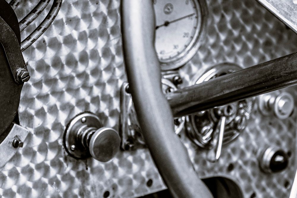 Détail à l'intérieur d'une Bugatti Type 35, voiture de course des années 1920. La Bugatti Type 35 était une voiture de course très réussie à l'époque et a été produite en plusieurs versions.