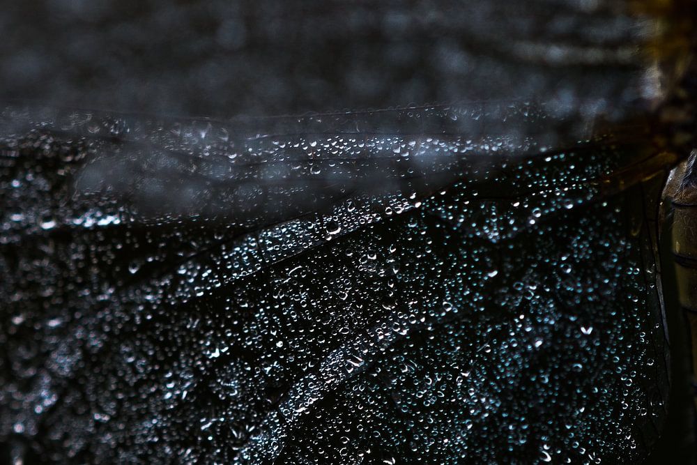 Une libellule noire photographiée depuis le haut. Des gouttelettes de condensation pendent encore dans les ailes si tôt dans la journée que cette photo a été prise. La heidelibel noire a été photographiée dans les Hautes Fagnes en Belgique.