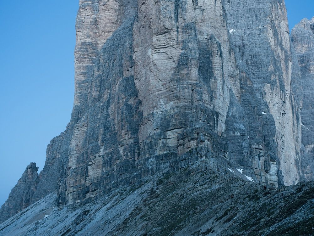 La photo montre le côté est des 3 Cimets juste avant le lever du soleil. Pour être là si tôt, j'ai dû régler mon réveil sur 2h30. La randonnée a commencé alors qu'il faisait encore nuit et j'étais à destination à l'heure bleue. Il est important de réserver à temps (en ligne) un créneau pour l'autorisation d'accès à la route à péage de Misurina jusqu'aux Trois Cimets.