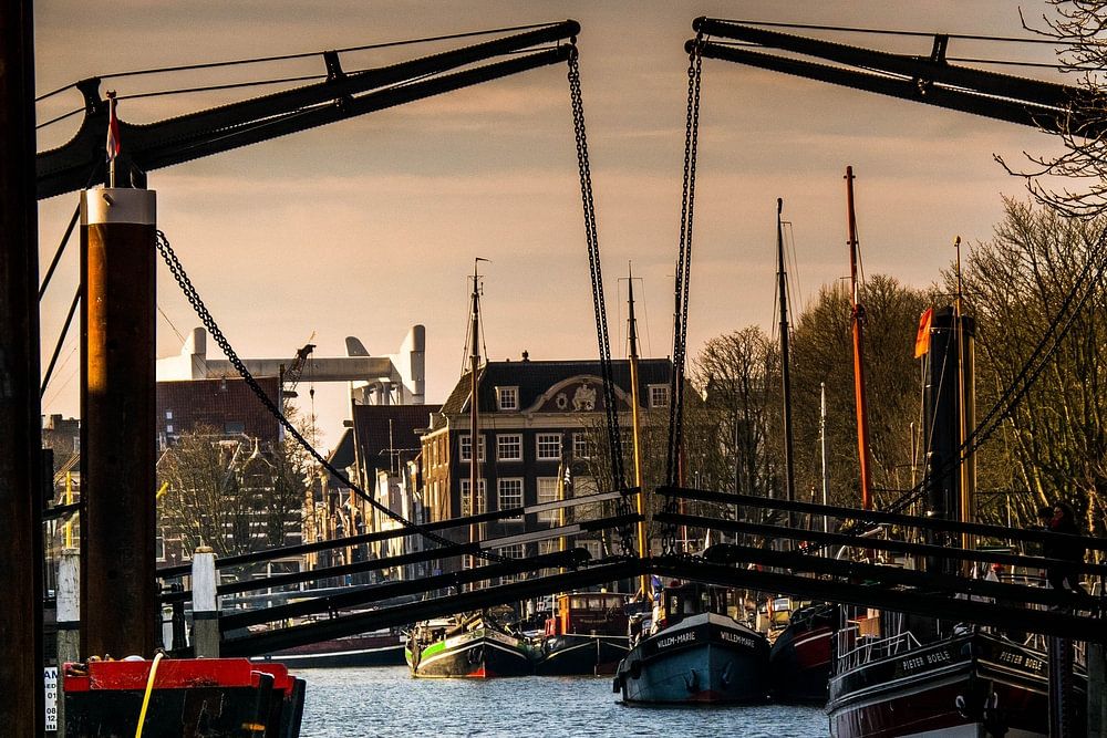 Dordrecht, belle Hollandsestraat Les Pays-Bas, avec des maisons hollandaises et un beau pont sur l'eau