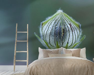 Macro opname van een uitgebloeide bloem. Opvallend zijn de minieme druppeltjes