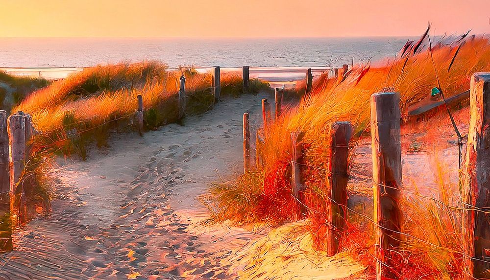 Acheter ce art numérique Dunes avec mer par Mustafa Kurnaz sur toile, aluminium, ArtFrame ou photographie (encadrée), impression d'art en haute définition et tout type de format.