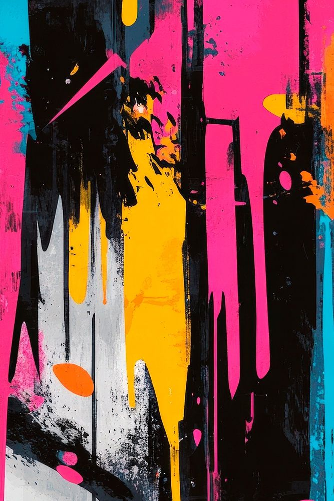 Expression d'énergie et de créativité, le tableau dégage des couleurs vives qui dansent sauvagement sur la toile. La combinaison d'un rose vif, d'un jaune lumineux et d'un bleu froid donne un accent moderne. Idéal pour le salon, il anime chaque pièce et inspire des conversations animées. Parfait pour une retraite créative !