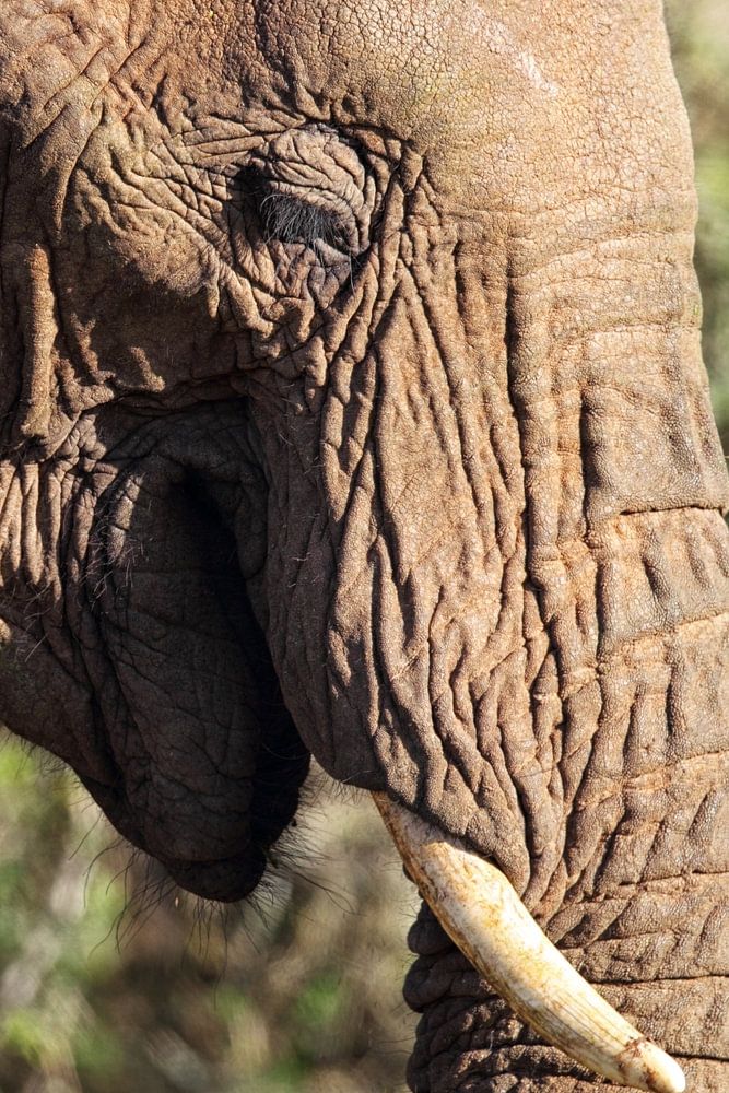 Gros plan d'un éléphant d'Afrique (Loxodonta africana) dans la réserve de chasse d'Amakhala, au Cap-Oriental, en Afrique du Sud.