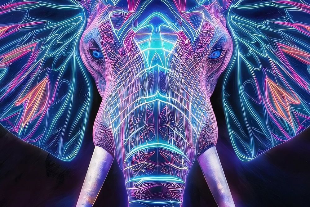 Cet impressionnant dessin d'éléphant combine des couleurs néon vibrantes et des éléments futuristes pour créer une œuvre d'art saisissante. Le style d'art numérique donne vie à l'éléphant grâce à une combinaison de lignes épurées et de lumières vives, créant un effet dynamique et énergique. Parfaite pour les intérieurs modernes, cette pièce ajoute une touche de créativité et de couleur à n'importe quel espace. Idéale pour une chambre ou un bureau, cette œuvre d'art attire immédiatement l'attention et stimule l'imagination. Le mélange de bleu, de violet, de rose, d'orange et de blanc crée une palette de couleurs harmonieuse qui peut s'intégrer à n'importe quel décor.