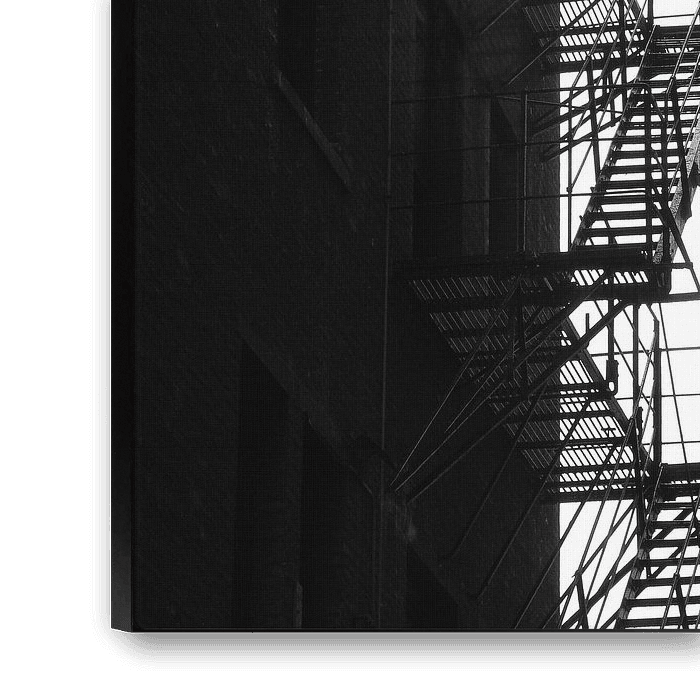 Escaliers de secours dans le centre-ville de Chicago, aux États-Unis, contre un mur. Noir et blanc.