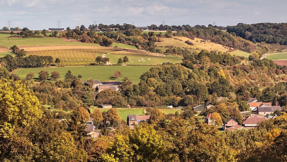 Vue sur la vallée de la Geul à Etenaken (Wijlre) et sur le Vrakelberg depuis le Keutenberg dans la région de Heuvelland dans le sud du Limbourg (Pays-Bas).