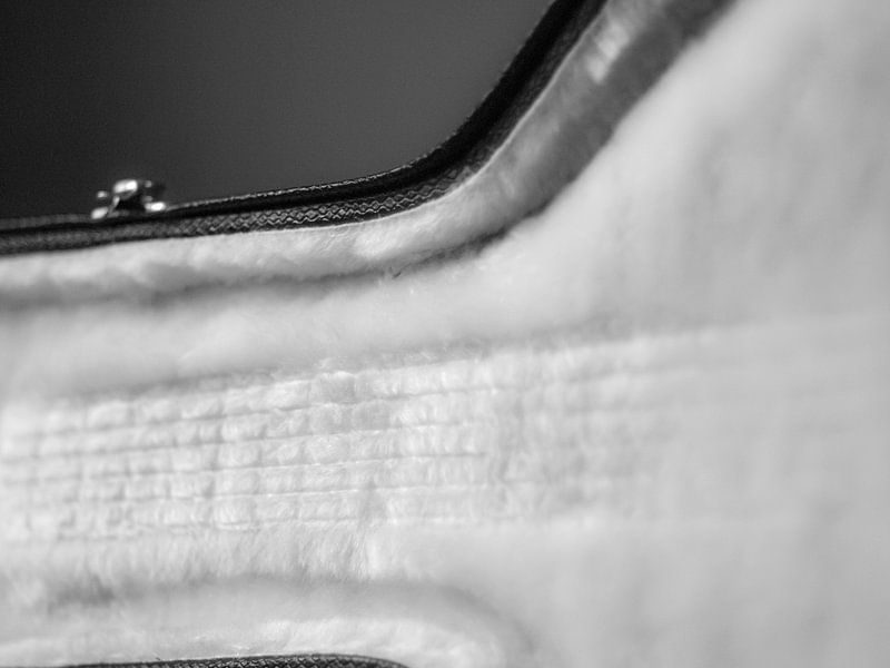 Une photo en noir et blanc d'un étui de guitare ouvert. Cette photo peut amener le spectateur à se demander quelle belle guitare devrait normalement se trouver à l'intérieur.