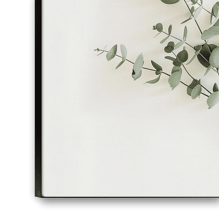 Cette impression d'art montre une représentation filigrane de feuilles d'eucalyptus sur un fond blanc clair. Les douces nuances de vert et les détails délicats des feuilles confèrent à cette image un rayonnement calme et rafraîchissant. La représentation minimaliste s'intègre parfaitement dans les pièces à vivre ou les bureaux modernes et s'adresse à tous ceux qui apprécient la nature et les plantes. Le contraste net entre le feuillage délicat et l'arrière-plan sobre fait de cette œuvre d'art une pièce décorative polyvalente.
