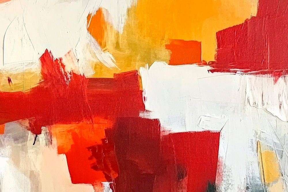 Des tons rouges ardents se fondent avec des jaunes éclatants et des gris doux, tandis que des coups de pinceau vifs dégagent dynamisme et énergie. Cette composition artistique invite à laisser s'épanouir les pensées et à stimuler la créativité. Idéale pour le bureau ou le salon, où elle apporte une touche d'inspiration et stimule les conversations.
