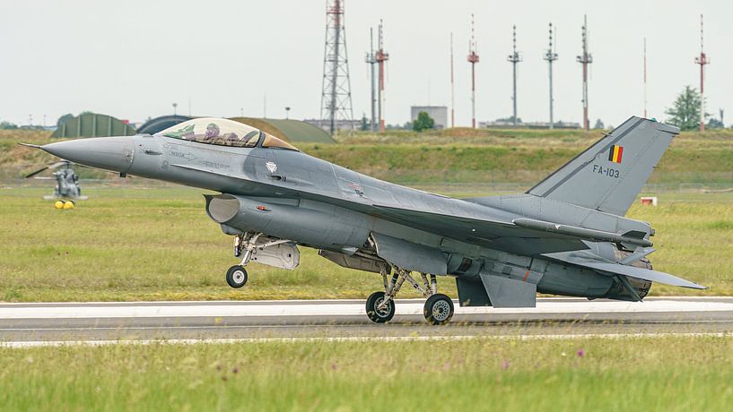 Ce F-16 de la Force aérienne belge a atterri sur la Base Aérienne 709 Cognac-Châteaubernard en France.