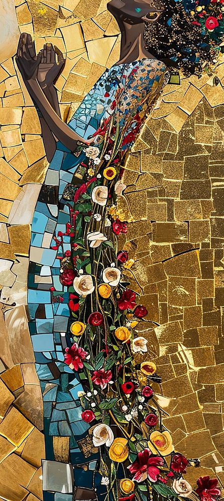 Détails : femme, or, mosaïque, fleurs, élégance, art, portrait, moderne, gracieux, luxuriant