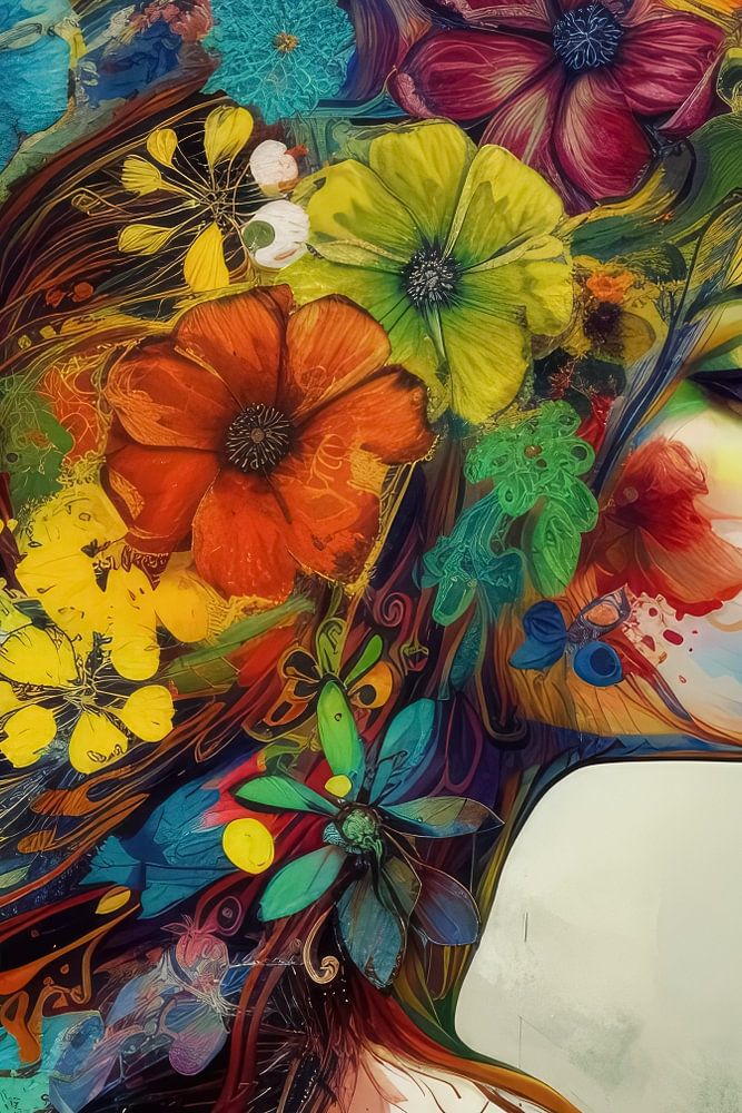 Femme avec des fleurs dans les cheveux