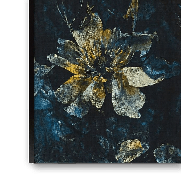 Ce motif particulier associe le portrait enchanteur d'une femme aux yeux intenses et perçants à des fleurs délicates subtilement tissées en arrière-plan. Son visage est partiellement caché derrière un tissu bleu, ce qui crée une atmosphère de mystère et de puissance. Les fleurs, réalisées dans des tons doux d'or et de blanc, ajoutent une touche naturelle et sophistiquée à la scène. Le style artistique et le jeu des couleurs font de ce motif une œuvre d'art intrigante qui confère instantanément à une pièce un aspect unique et élégant. Idéal pour ceux qui recherchent une œuvre à la fois profonde et belle.