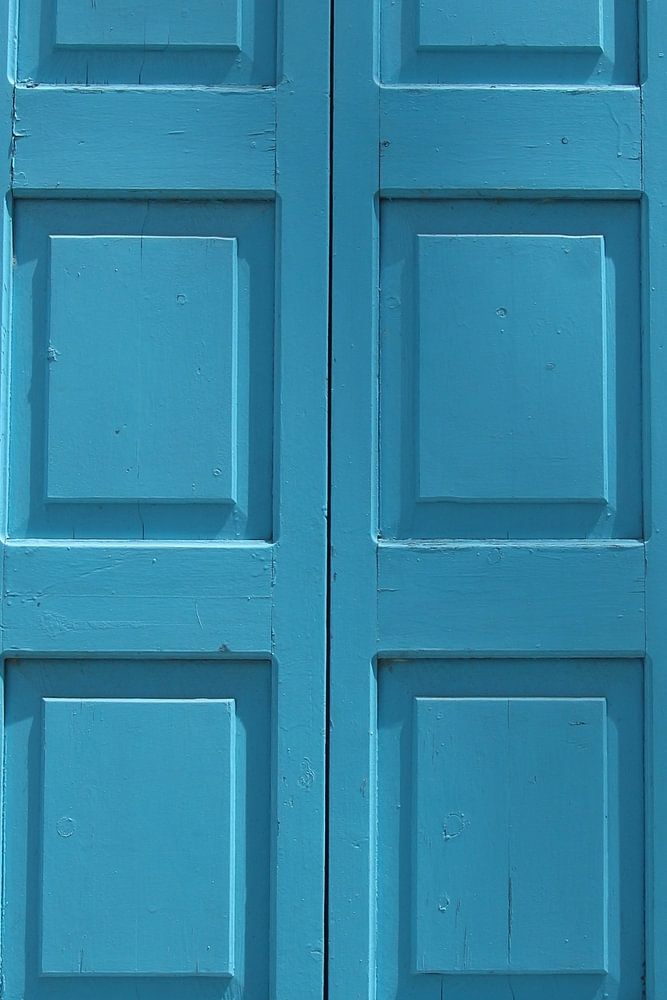 Fenêtre bleue dans un mur blanc par Daniël Loman
