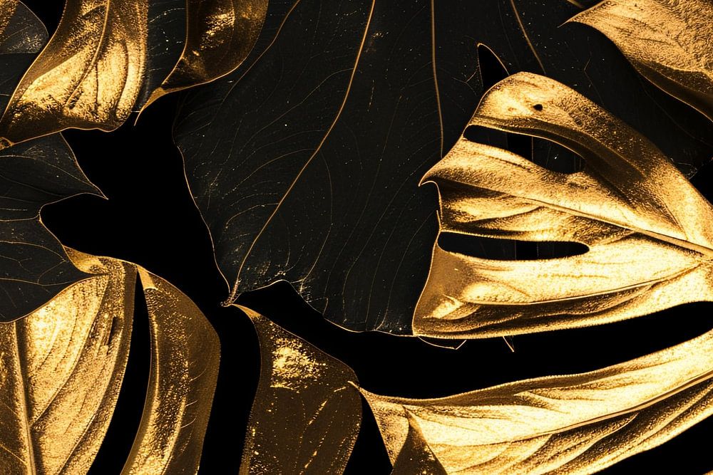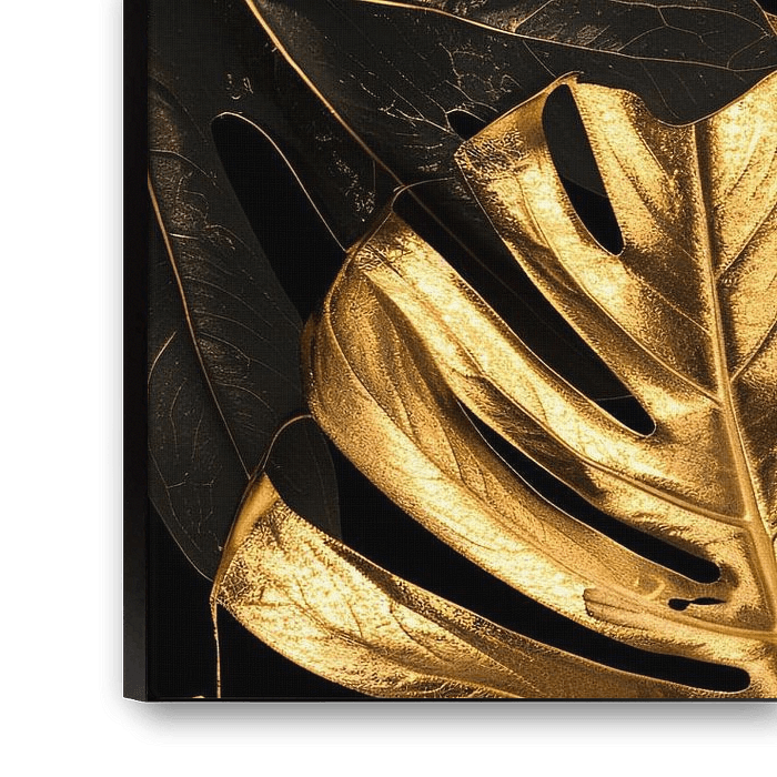 Célébrant l'élégance naturelle des feuilles de Monstera, cette image étonnante apporte une touche de luxe à n'importe quelle pièce. Le fond noir riche et profond constitue la toile parfaite pour les feuilles d'or détaillées qui captivent les spectateurs par leur éclat subtil et leur texture finement appliquée. Le contraste entre l'or sombre et l'or métallique crée un look moderne et intemporel qui ne dépareillerait pas dans un intérieur classique ou contemporain. Idéal pour ceux qui cherchent à embellir leur salon, leur bureau ou leur hall d'entrée avec un objet à la fois élégant et inspiré par la nature.