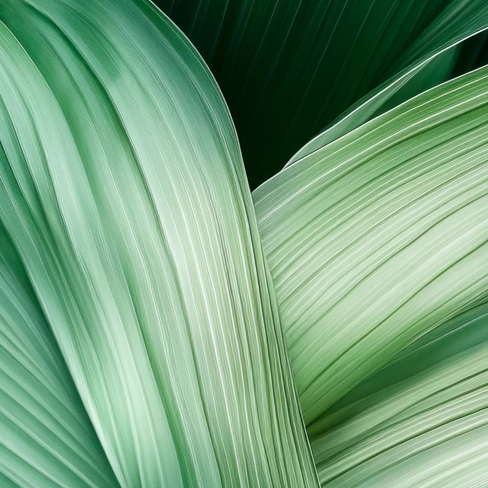 Telles de douces vagues, les riches feuilles vertes se déploient, traversées par des lignes élégantes et des textures délicates. Le jeu d'ombre et de lumière leur confère une grâce presque éthérée, tandis que la palette de couleurs vives respire l'âme de la nature. Une interaction harmonieuse qui évoque le calme et la fraîcheur.