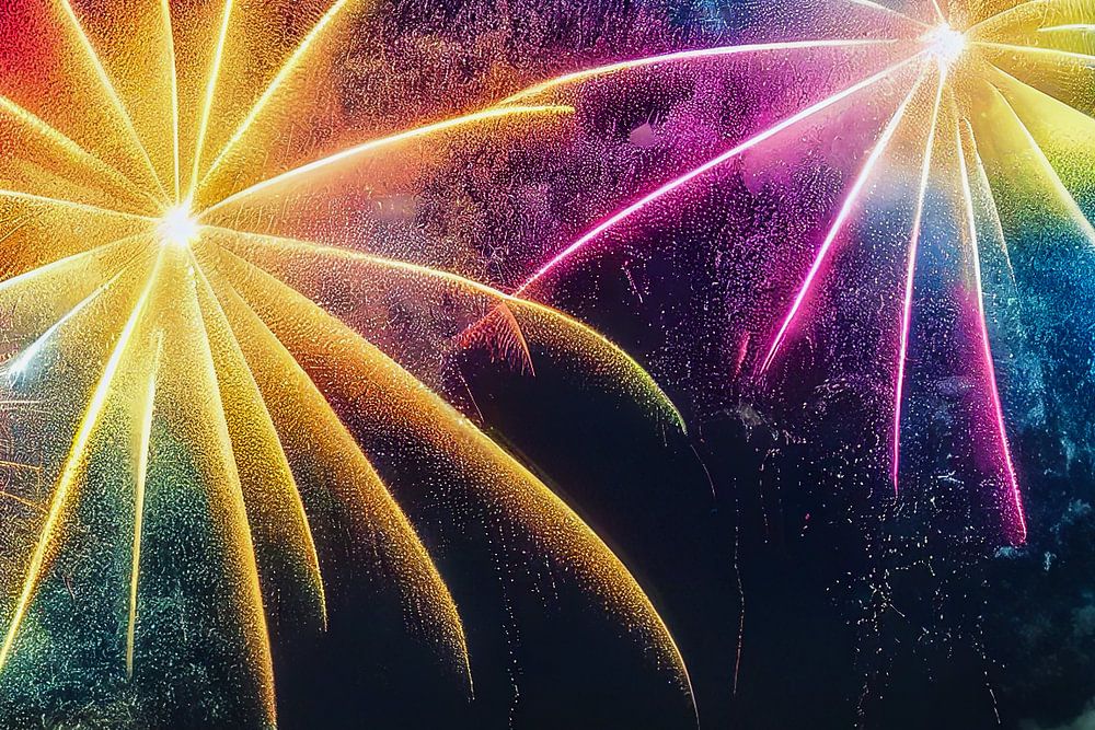 Feux d'artifice au-dessus d'une ville avec des gens Illustration