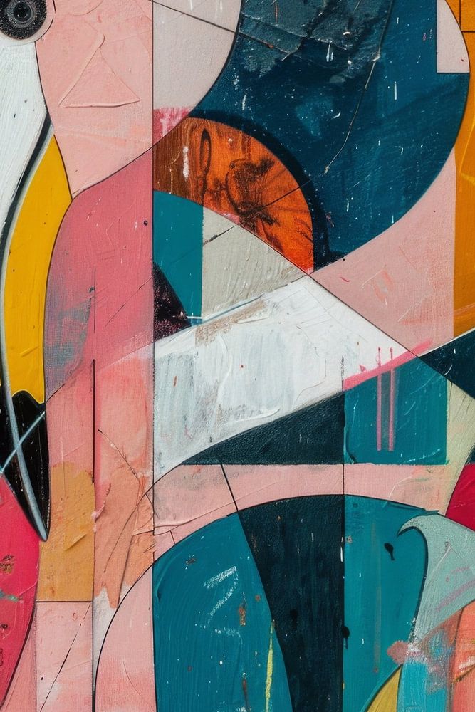 Cette œuvre d'art dynamique combine la grâce d'un flamant rose avec l'esthétique moderne du cubisme. Les couleurs vives et les formes géométriques créent une composition fascinante qui respire le mouvement et l'énergie. Idéal pour les amateurs d'art qui apprécient les couleurs vives et les styles avant-gardistes. Cette pièce est parfaite pour animer les espaces de vie ou de travail d'une note à la fois joyeuse et sophistiquée. Elle attire immédiatement tous les regards et apporte couleur et créativité à n'importe quel environnement.