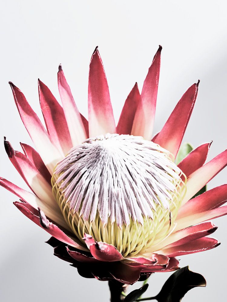 Achetez cette œuvre d'art florale Fleur de Protea dans un vase par Martijn Hoogendoorn sur toile, aluminium, ArtFrame ou photographie (encadrée), impression d'art en haute qualité et tout format.