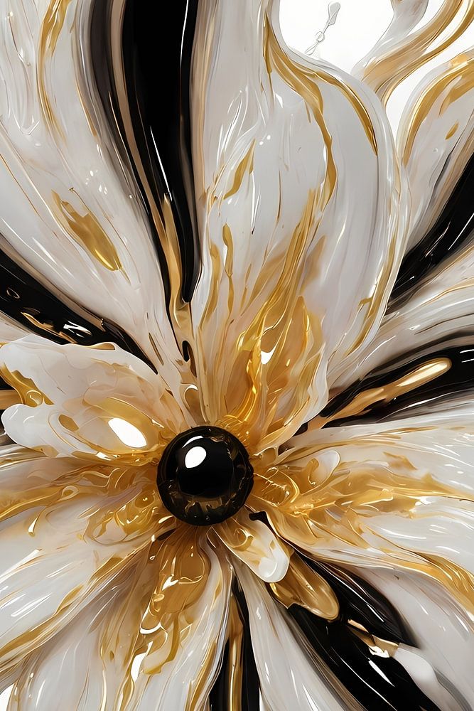 Cette création artistique présente une belle fusion de dynamisme fluide et d'élégance majestueuse. L'utilisation d'accents dorés lui confère un aspect luxueux, tandis que les contrastes nets entre le noir et le blanc apportent une touche de modernité. La fleur semble presque vivre et bouger sur la toile, ce qui en fait un objet qui attire le regard dans n'importe quelle pièce. Idéal pour ceux qui cherchent à embellir leur intérieur avec une pièce qui exsude à la fois la beauté naturelle et le flair artistique. Une peinture qui ne se contente pas d'affirmer son style, mais qui invite également le spectateur à explorer les couches profondes de ses coups de pinceau expressifs.