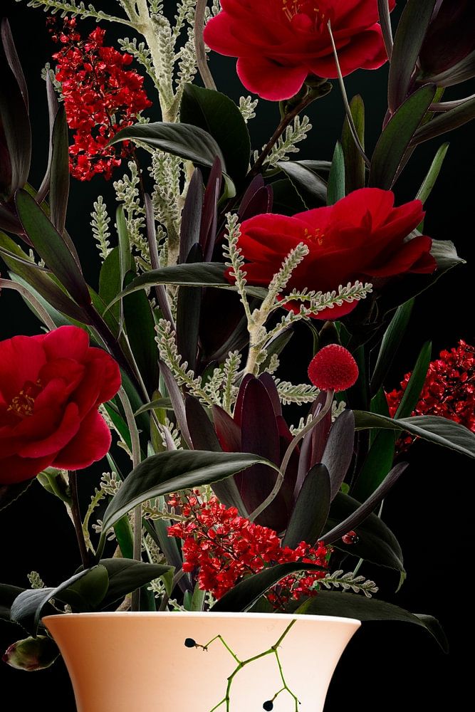 Achetez cette œuvre d'art florale Fleurs rouges dans un vase par Klaartje Majoor sur toile, aluminium, ArtFrame ou photographie (encadrée), impression d'art en haute qualité et tout format.