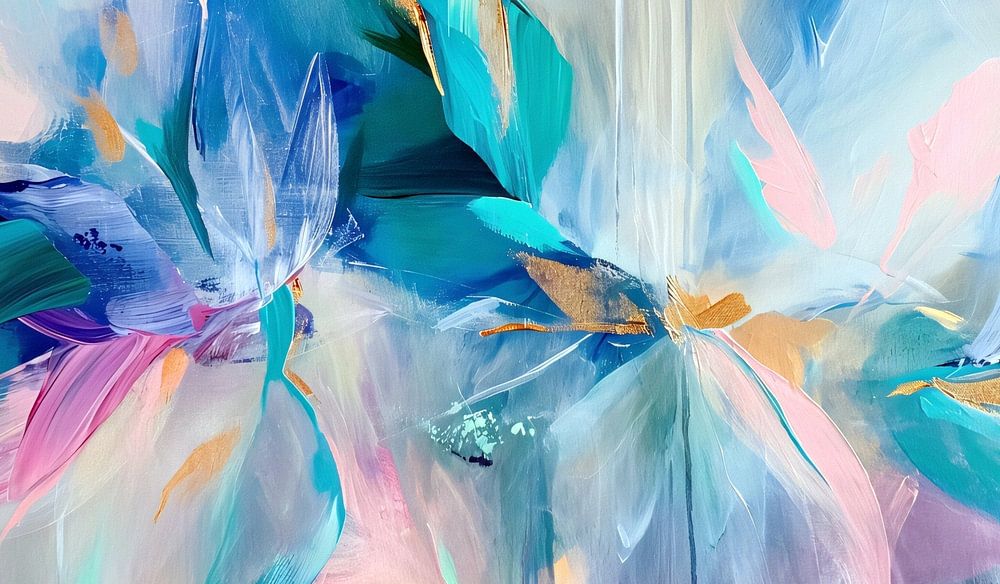 Fleurs abstraites dans des tons pastel avec des accents dorés.