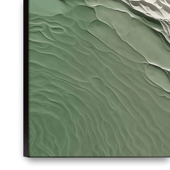 Contraste de texture entre deux éléments : une couche verte lisse, presque liquide, qui passe à une surface blanche avec un motif rugueux.