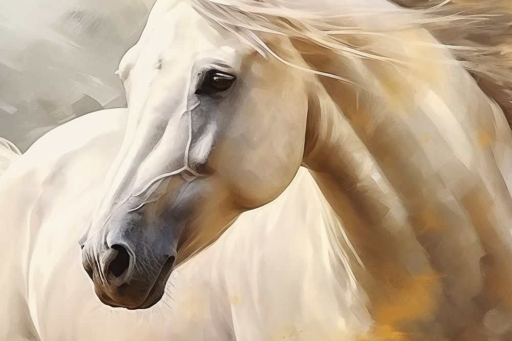 Fond artistique abstrait avec un cheval blanc, en design peinture à l'huile