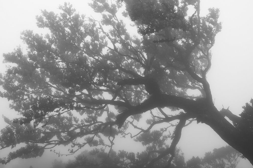 Arbres mystiques de la forêt nuageuse de Madère, une région autonome du Portugal
