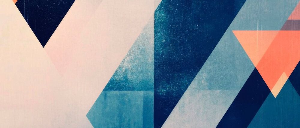 Des formes géométriques dansent dans des tons bleus harmonieux, tandis que des accents chauds brillent en orange. Cet arrangement artistique de lignes claires et de triangles vivants crée une atmosphère moderne et dynamique. Idéal pour un bureau créatif, il inspire de nouvelles idées et donne à chaque pièce une touche contemporaine.