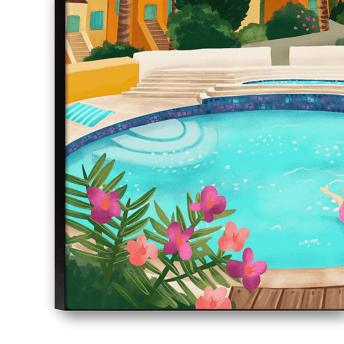 Charmante illustration d'une piscine à Cannes, en France. La Côte d'Azur est connue pour son climat chaud. Ces couleurs gaies et lumineuses en font une œuvre d'art parfaite lorsque vous souhaitez refléter la couleur et la chaleur de la Provence dans vos intérieurs.
