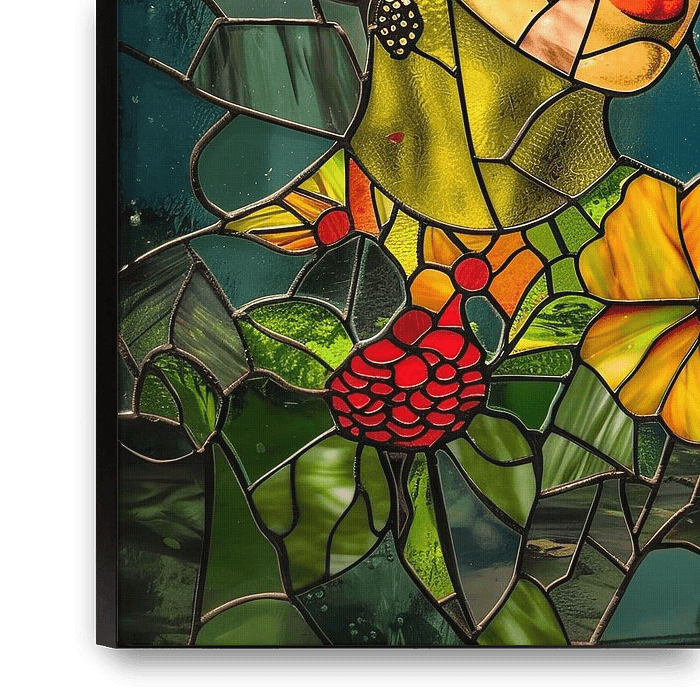 Dans cette mosaïque de verre artistique, le portrait aux multiples facettes de Frida capte à la fois la lumière et l'attention. Les qualités translucides et réfléchissantes du matériau confèrent à cette œuvre picturale une profondeur exceptionnelle, tandis que les motifs floraux et les couleurs vives honorent le lien de Frida avec la…