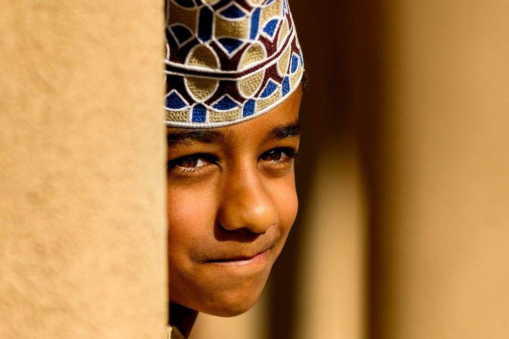 Le garçon timide du marché aux chèvres de Nizwa observe tout de loin. Son visage et ses couleurs s'intègrent si bien dans le paysage.