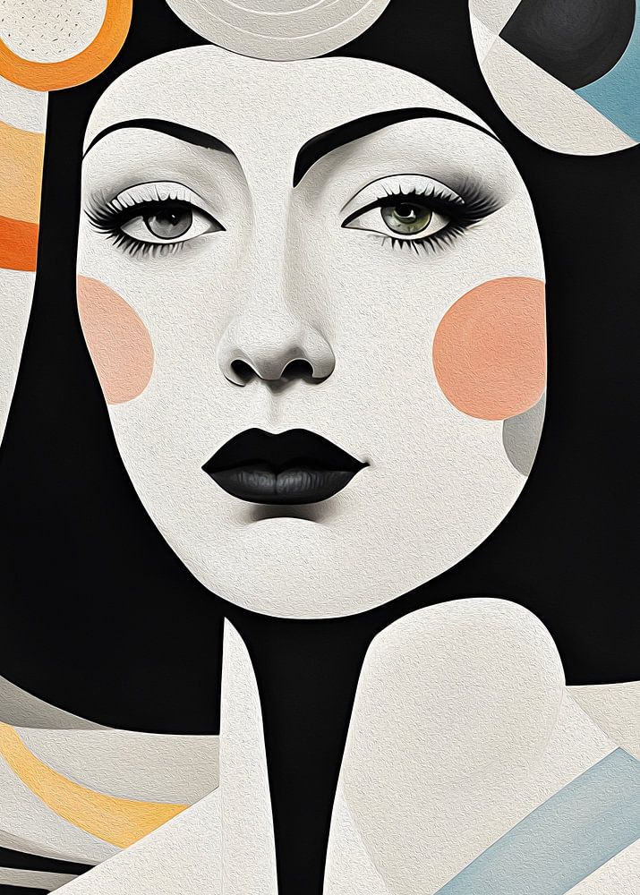 Spécialement conçu pour attirer l'attention dans votre intérieur, cet objet d'art saisissant représente le portrait intrigant d'une femme entrelacé de formes géométriques nettes. Son visage expressif s'anime au milieu des lignes et des angles aigus, créant un contraste visuellement captivant. La palette de couleurs limitée au noir et blanc et aux couleurs pastel ajoute une élégance intemporelle et un attrait contemporain. L'association d'un portrait classique et d'une géométrie moderne permet à l'œuvre d'art de capter l'attention et d'ajouter une touche artistique et sophistiquée à votre espace. Il s'agit d'un ajout élégant qui donnera vie aux murs de votre maison et suscitera la conversation.