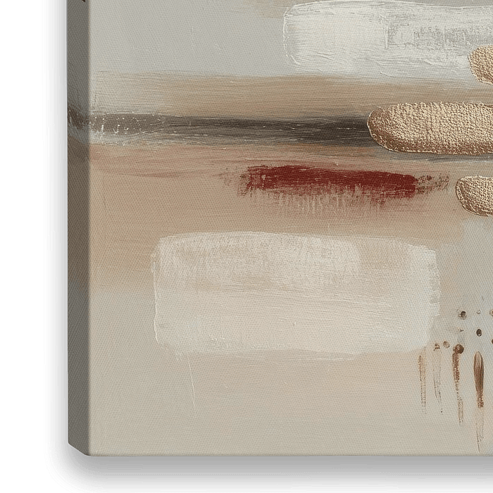 À propos de ‘Golden Pebbles, abstraction minimale en nude et or’ par Japandi Art Studio