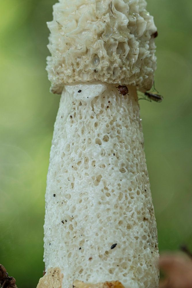 La grande punaise puante est très présente dans les forêts. Sa forme ressemble à un pénis. Ce spécimen blanc se tient fièrement debout et est parfaitement net. Le premier plan et l'arrière-plan sont des bokeh oniriques bruns et verts. Cette œuvre convient aux salles d'attente et aux chambres à coucher, par exemple.