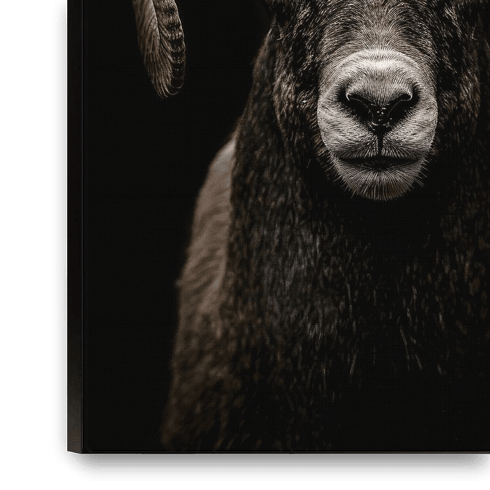 Acheter ce art numérique Gros plan puissant d'un bélier en noir et blanc par Art & Soul Creations sur toile, aluminium, ArtFrame ou photographie (encadrée), impression d'art en haute définition et tout type de format.