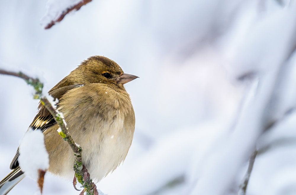 Gros plan sur une femelle de Pinson des arbres dans le Schee
