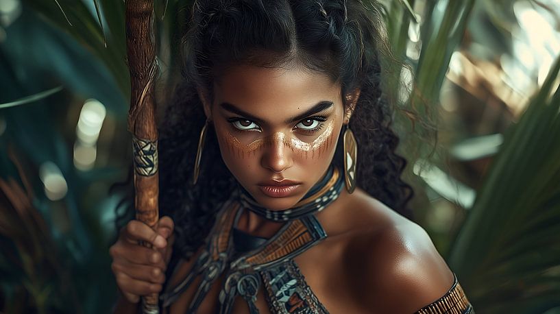 Guerrière amazonienne féroce dans la jungle tropicale par Lisa Bovenlander