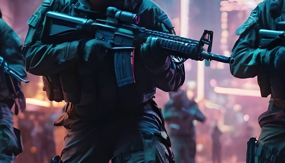 Les soldats d'élite marchent dans les rues d'un pas décidé, leurs armes prêtes et leur regard fixé sur la tâche à accomplir. Les néons des publicités lumineuses leur offrent un spectacle coloré, créant un contraste intrigant entre l'obscurité de la nuit et l'énergie rayonnante de la ville. L'ensemble de la scène dégage un air de tension et d'urgence, comme un moment d'action décisive dans une bataille en cours.
