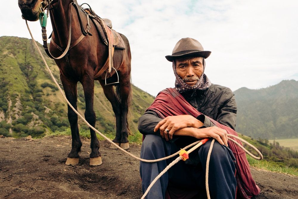 Chaque jour, il se rend à cheval de son domicile au volcan, ce qui lui prend environ 40 minutes.