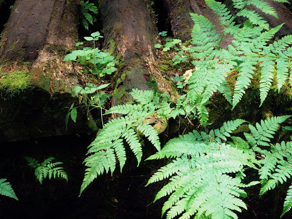 La fougère trouve un espace pour survivre sur les planches d'un pont en bois délabré.