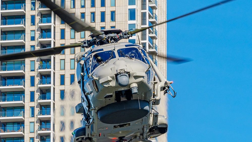 Cet hélicoptère NH-90 du Defence Helicopter Command a fait une démonstration d'interception de transport de drogue le matin et de lutte anti-sous-marine l'après-midi lors des World Port Days 2025.