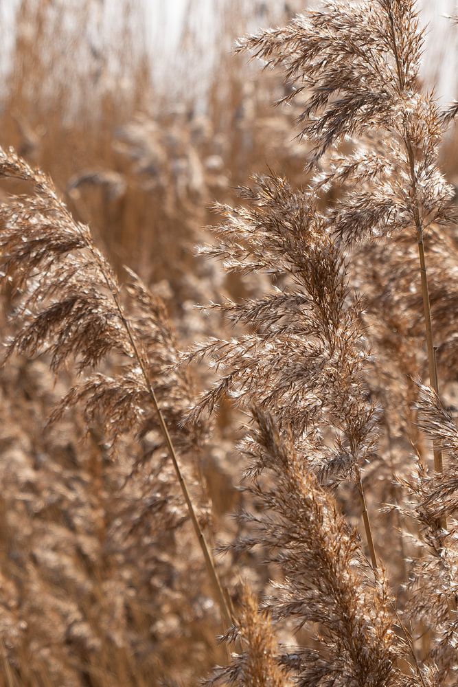 Herbe de la pampa décorative et nature endormie en hiver. Cette photo est dédiée à l'ambiance paisible au bord d'un lac, ainsi qu'aux panicules plumeuses de l'herbe décorative. Je me suis laissé inspirer par l'effet rêveur et élégant de l'herbe décorative, ainsi que par les couleurs naturelles discrètes. Les frondes filigranes de l'herbe de la pampa apparaissent dans des tons beiges et gris argenté.