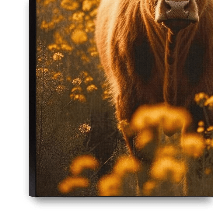 Achetez cette œuvre d'art florale Highland Cows And Yellow Flowers No 2 (Vaches des Highlands et fleurs jaunes) par Treechild sur toile, aluminium, ArtFrame ou photographie (encadrée), impression d'art en haute qualité et tout format.