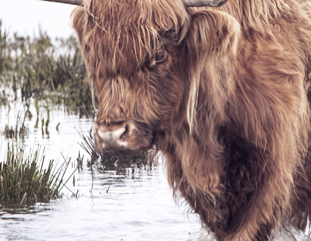 Achetez cette œuvre d'art de Highland écossais Highlander écossais dans l'eau par natascha verbij sur toile, aluminium, ArtFrame ou photographie (encadrée), impression d'art en haute qualité et tout format.