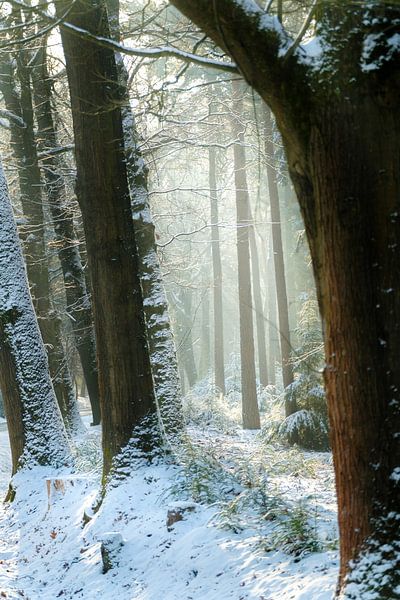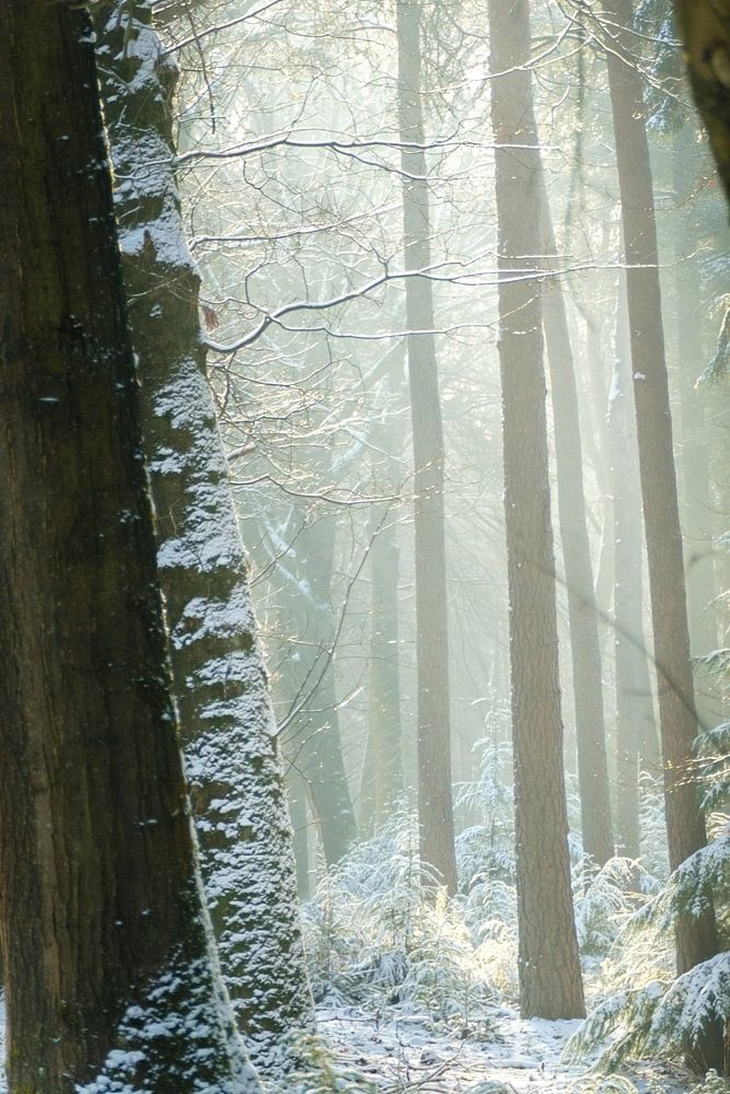 La neige dans la forêt de La Haye près d'Enschede crée une atmosphère mystique.
